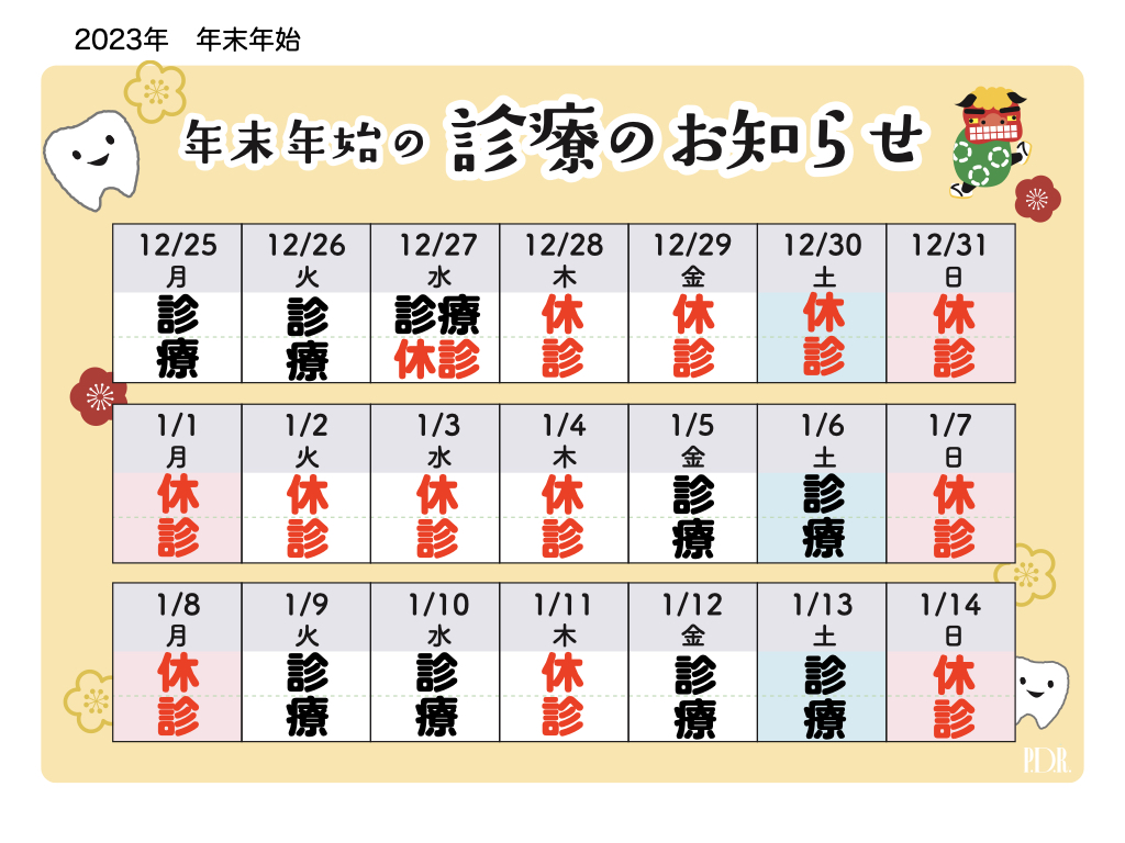 【 休診期間:令和5年12月28日 ~ 令和5年1月4日】